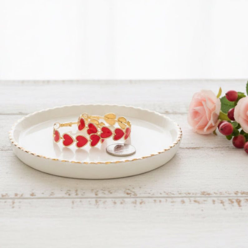 Make a bold statement with our generously proportioned Big Hearted heart hoop earrings, designed to celebrate love and connection year-round. Gold-toned edges add an elegant touch of sophistication, while the lightweight construction ensures comfortable all-day wear without compromise. Perfect for Valentine's Day or whenever you want to express your affectionate side, these earrings blend timeless romantic appeal with contemporary style.
