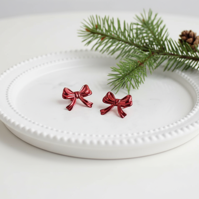 Add a pop of playful charm with our Bitty Bows earrings. These dainty red bow earrings are a delightful way to celebrate the season, bringing a fun and flirty vibe to any outfit. Perfect for adding a touch of whimsy and color, they’re your new favorite little accessory.