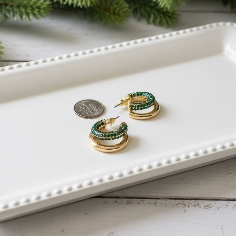 Our Double Hoop Crystal Classics earrings combine understated elegance with eye-catching sparkle. The outer hoop features three rows of vibrant crystals that catch light beautifully, while the inner hoop maintains a sleek gold-tone finish for balance. Versatile enough for everyday wear yet polished enough for special occasions, these earrings deliver that perfect blend of refined luxury and modern edge. A statement piece that works year-round, because every color has a season!