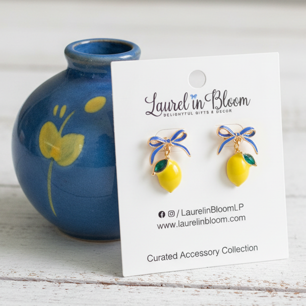 Our Amalfi Sweet Lemon Bow Drops are perfect for warm-weather wardrobes and vacation-ready style. Pair them with breezy linen dresses, crisp white blouses, denim jackets, or colorful summer prints for a fresh seasonal look. These cheerful citrus earrings are ideal for summer gatherings, coastal getaways, farmers market mornings, and sunny celebrations, adding a playful pop of color and charm to everyday outfits