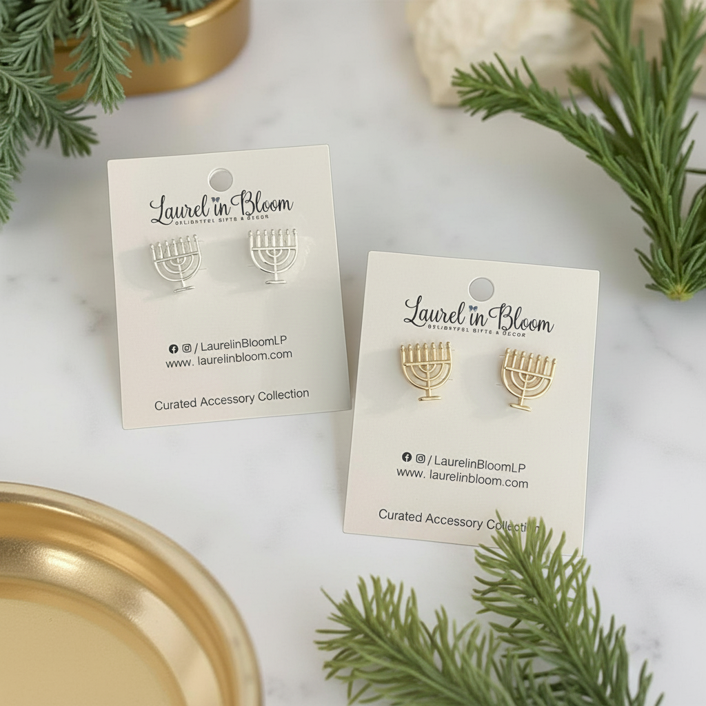 Add a spark of joy to your Hanukkah celebrations with these charming .75 inch Mini Menorah Earrings! Available in two festive finishes, they’re the perfect accessory to light up any holiday outfit and share in the spirit of the season.