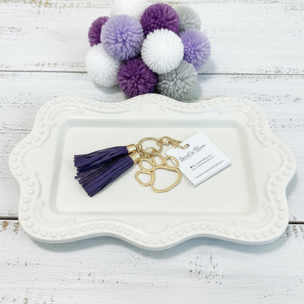 Roar into every day with this eye-catching Mountain Lion keychain! Featuring a trendsetting oversized charm with a purple vegan leather tassel that lets your school spirit shine, this playful accessory is the perfect way to show your pride wherever you go. Durable and stylish, it's ideal for backpacks, bags, or keys. Show the world you're a Mountain Lion fan with this must-have spirit piece!