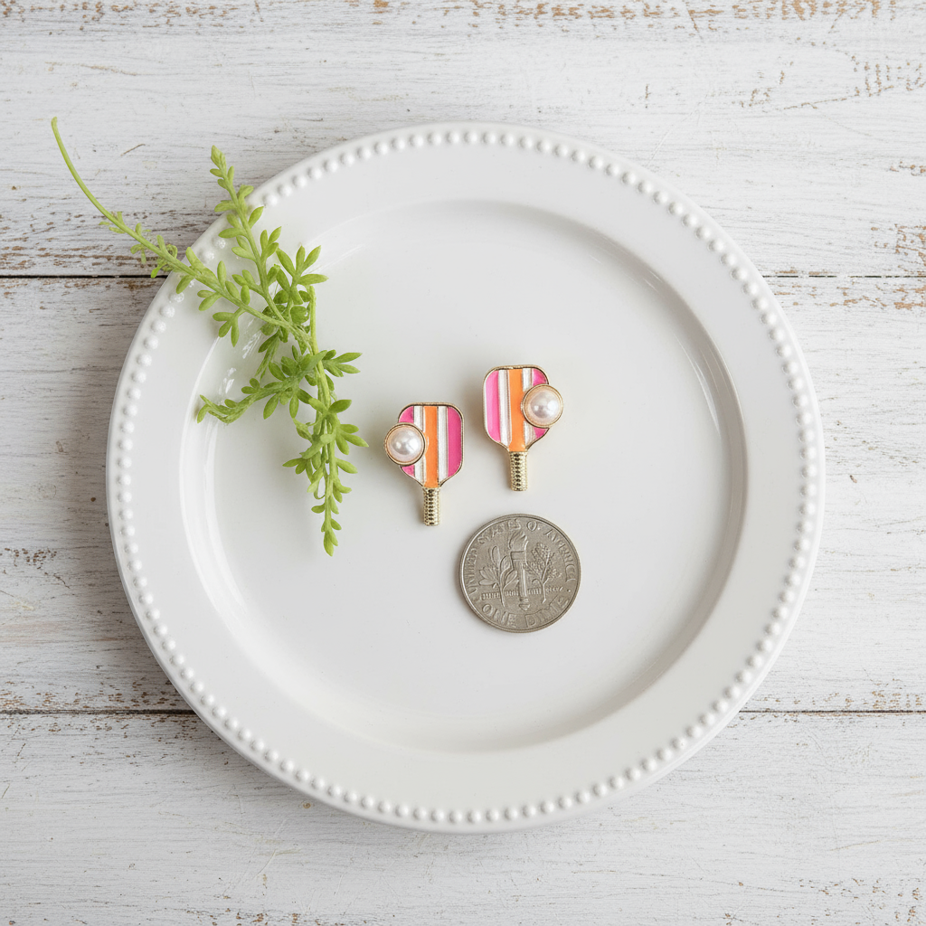 Elevate your game and style with these preppy striped pickleball paddles featuring cultured pearl accents. Designed to blend classic elegance with sporty flair, they offer a refined look that transitions seamlessly from the court to everyday wear. Perfect for those who appreciate classic style and sophistication with preppy and fun detail. Available in 4 colors.