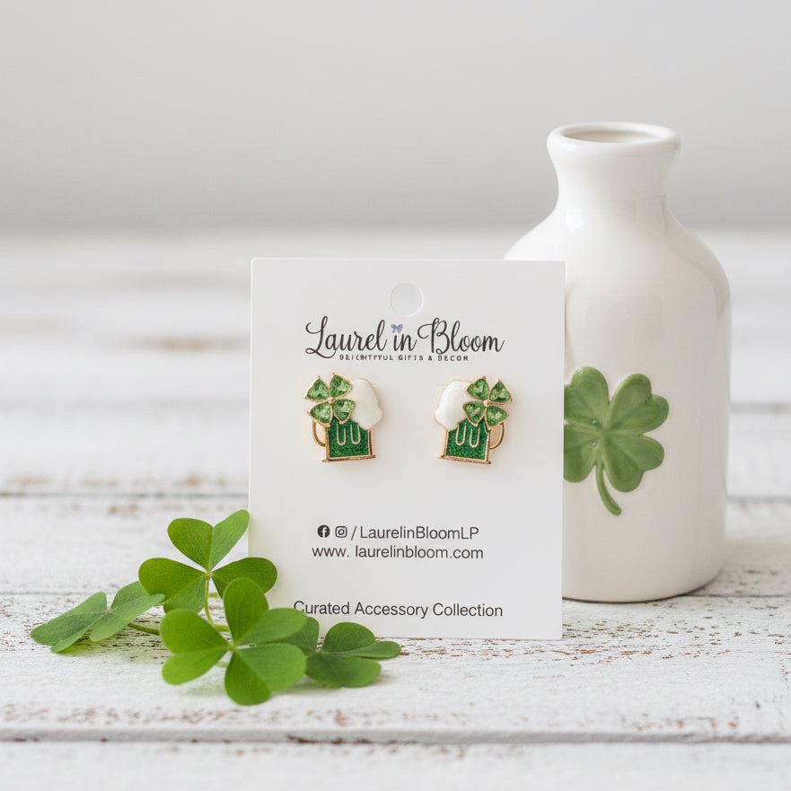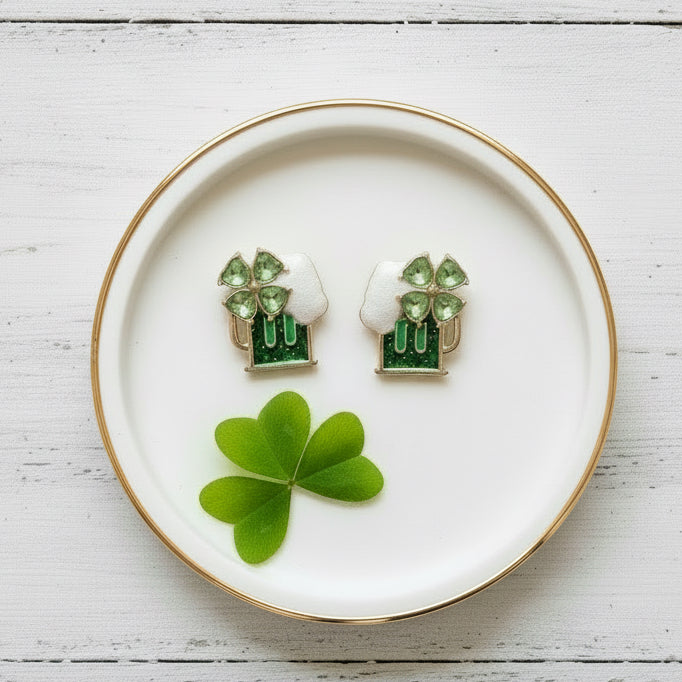 Get lucky this St. Patrick's Day with our newest style of Beer-ings! These enamel earrings bring the festive cheer with detailed beer mugs, frothy foam tops, and charming clover accents. Sized just right for every style and taste, they're the conversation starter you didn't know you needed. Whether you're hitting the parade or the pub, these playful accessories deliver instant holiday personality. Slip them on and prepare for a day filled with laughs, good vibes, and plenty of "Ale Yeah" moments. Your seasonal jewelry collection just got a whole lot more fun!