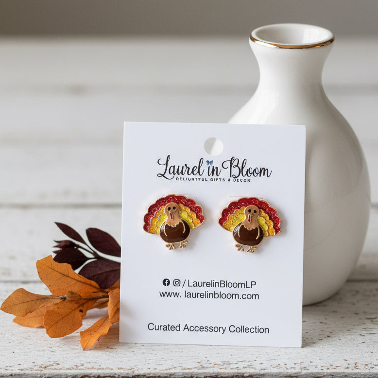 Give lighthearted thanks for the season with our Totally Tom Turkey earrings! This fun pair showcases turkeys with traditionally colored feathers and charmingly detailed faces, bodies, and feet, and are sure to invite delightful compliments while you’re wearing them.